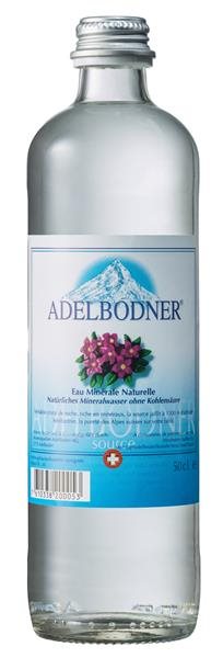 Natürliches Mineralwasser, mit Kohlensäure versetzt, in der aussergewöhnlichen Glasflasche.