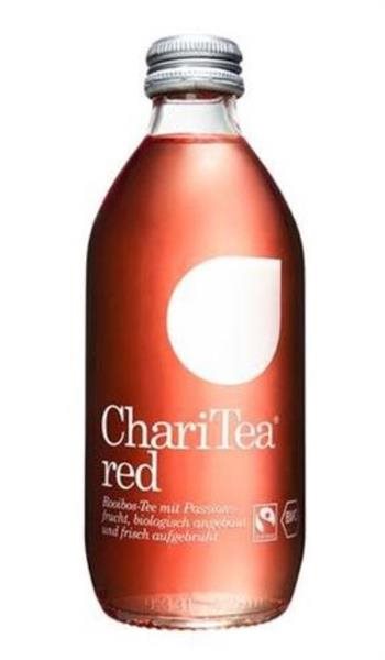 ChariTea ist frisch aufgebrühter Bio-Tee aus fairem Handel. Drei Sorten, alle ohne Zucker, leicht verfeinert mit Agavendicksaft und Fruchtsäften. Sämtliche Zutaten sind biologisch angebaut und der Tee stammt aus fairem Handel. Genauer: Von Plantagen in Südafrika und Sri Lanka, wo mit den Fairtrade-Geldern Bildungs- und Gesundheitsprojekte unterstützt werden.