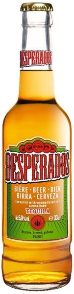 Süss wie die Sünde. Tequila flavoured Beer mit 5.9 %. Desperados feiert den Geist der Rebellion, tritt immer im einzigartigen Gewand auf und applaudiert dem Ungewöhnlichen. Das einzigartige Tequila-Aroma und die leichte, spritzige Zitrusnote sorgen an jeder Party für Furore.