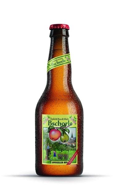 «Bschorle» vereint hochwertiges Malz mit dem Saft aus 28 Birnen- und Apfelsorten aus der Region Oberegg zu einem spritzig-süssen Getränk.