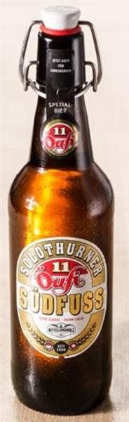 Das goldene, gehaltvolle und vollmundige Spezialbier Südfuss. Regionaler geht es nicht: Mit dem Gütesiegel «IG-Mitellandmalz» gebraut mit Braugerste aus Altreu und Hopfen aus Wolfwil.